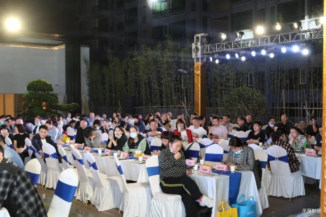 经销商晚宴当日晚6时许,以【乘“圣”跨越】为主题的,公海jcjc5500集团集团第45届国际家具展接待晚宴暨2020年度优秀经销商颁奖盛典,在营销中心四楼景观花园隆重举行,来自全国各地的经销商朋友欢聚一堂,共同分享一场精彩纷呈的晚宴。