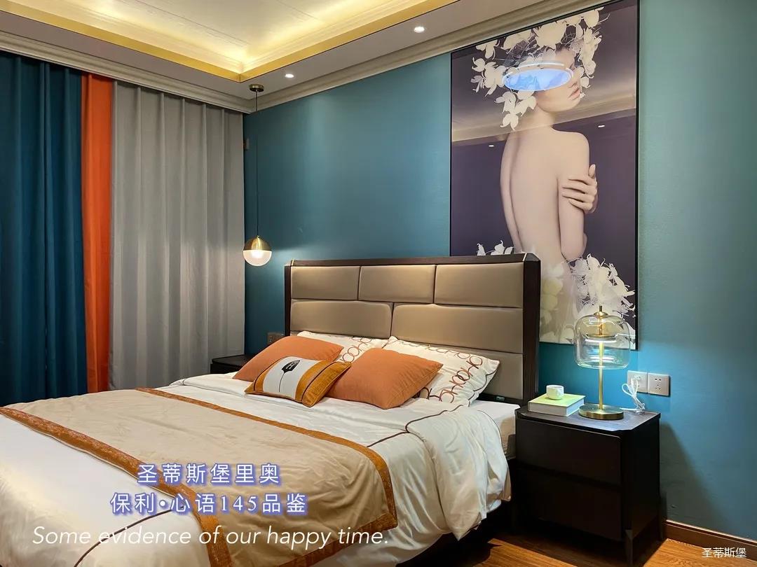 ▲主卧的每个区域都是根据业主意向精心打造。业主在主卧想要一些与众不同的色彩,所以大胆使用了色彩饱和度高的蓝绿,装饰则由色彩跳脱的鲜橙点缀,奇妙却和谐的混搭在空间中,视觉“冲突”感十足。